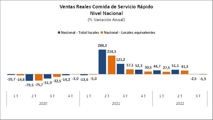 Signos de que la gente va priorizando en qué gastar. Y claro, los tiempos no están para darse tantos gustos. Las ventas reales de comida de servicio rápido a nivel nacional registraron una baja de 2,5% real anual en el tercer trimestre del 2022, influida en parte por una mayor base de comparación dada la fuerte aceleración del sector durante el segundo semestre del año pasado.