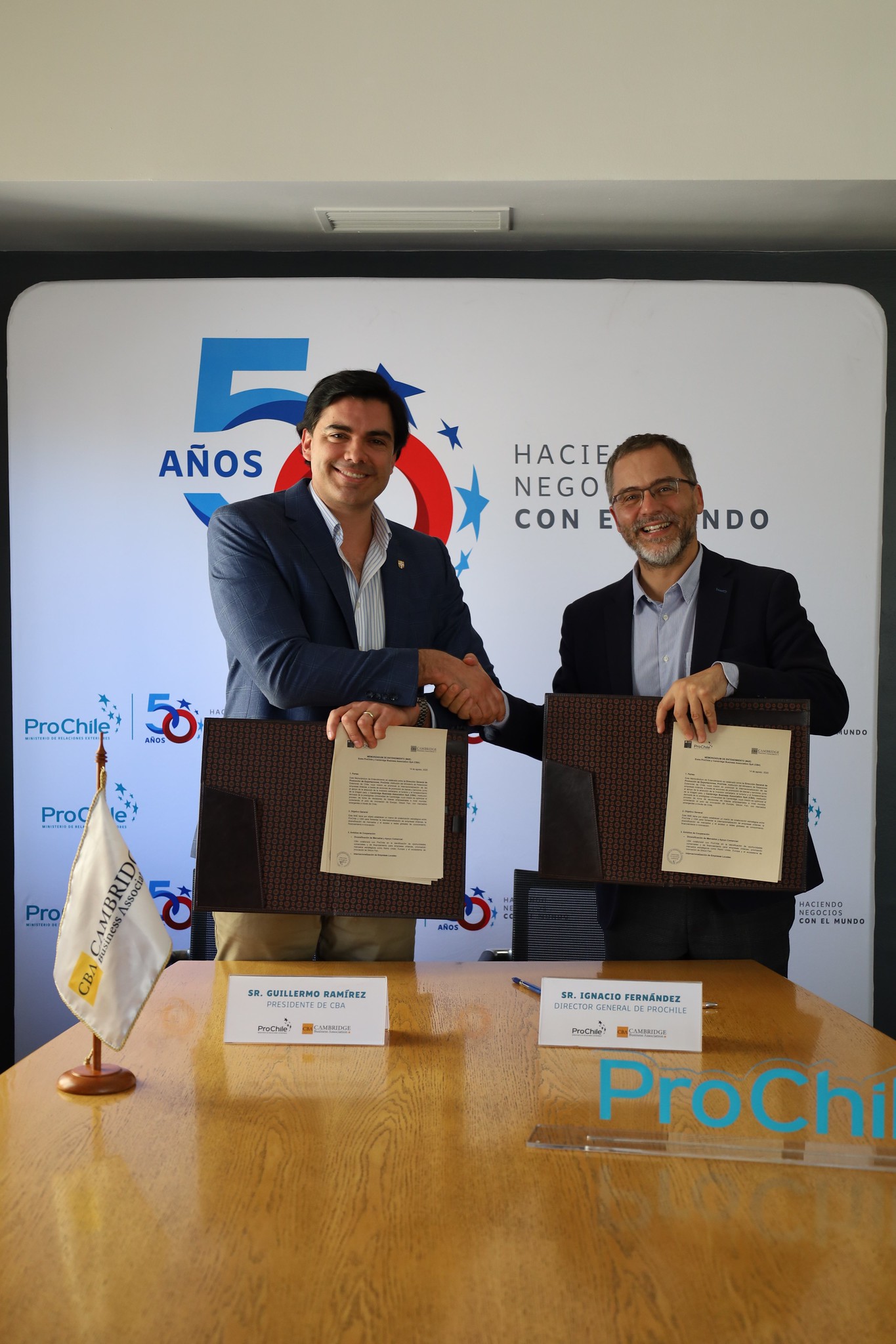 ProChile and the Cambridge Business Association (CBA), an institution derived from the University of Cambridge, signed a strategic collaboration agreement to promote the internationalisation of Chilean companies, market diversification and access to global networks of knowledge, financing and innovation.
