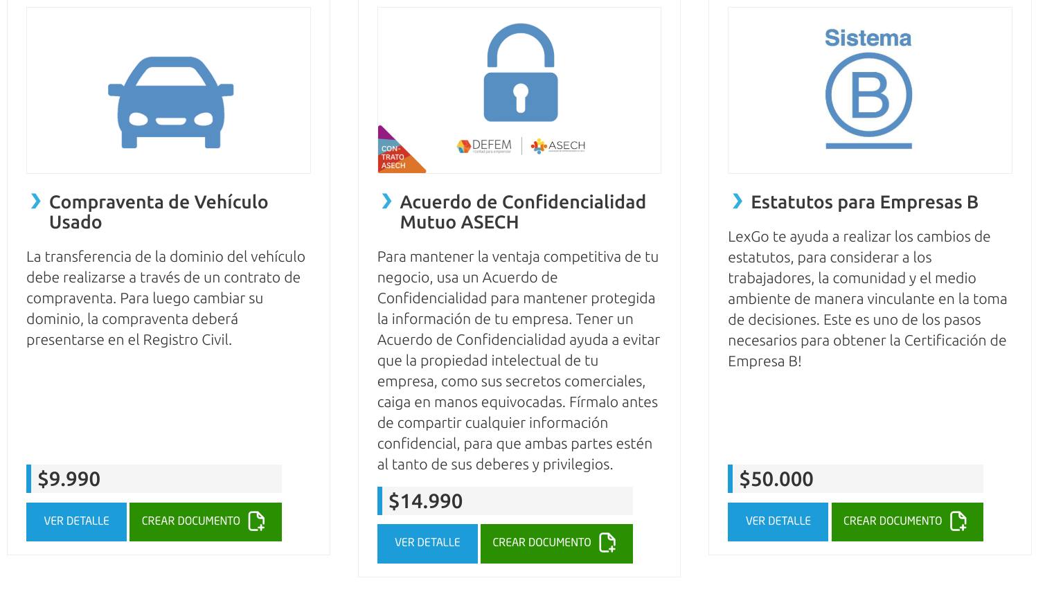 El emprendimiento tiene un portafolio de 13 potenciales escritos legales a los cuales puedes acceder rapidamente con valores que empiezan en los $9.990. Además, acaban de unirse a la Asociación de Emprendedores de Chile (ASECH) y Startup Chile, con quienes trabajan apoyando a las empresas participantes en todo lo que compete al ámbito legal.