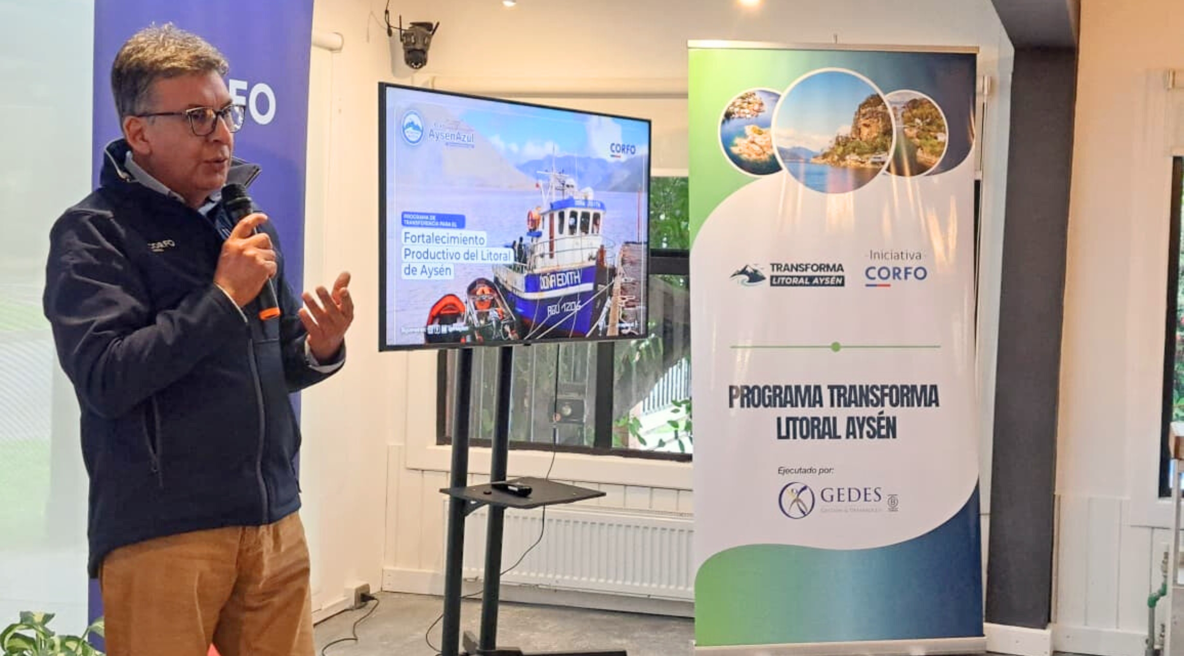 Marcelo Santana Vargas, gobernador regional de Aysén, destacó el potencial de la zona costera: "Tenemos que remar juntos para que el ecosistema de emprendimiento en el litoral sea un ambiente mucho más propicio. Por eso, que este programa de Corfo, que es el primero de nuestro Plan Aysén Azul, ya esté empezando hoy día y que este año ya podamos ver los primeros resultados, los primeros apoyos a los emprendimientos que ahí se están desarrollando, es vital. Lo importante es que lo hemos construido, también con quienes hacen turismo, con quienes le prestan servicio a la acuicultura, con los pescadores artesanales, por lo tanto, también recoge esa mirada".