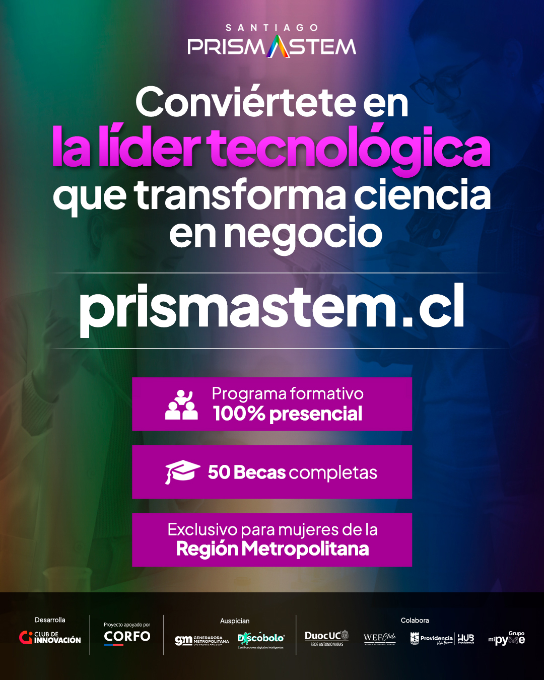 Santiago Prisma STEM -iniciativa de Club de Innovación con apoyo de Corfo Metropolitano- abre la convocatoria a su programa formativo presencial dirigido a mujeres con formación y/o experiencia en Ciencia, Tecnología, Ingeniería y Matemáticas (STEM), orientado a fortalecer sus capacidades y transformar sus ideas en sólidas propuestas de negocios.