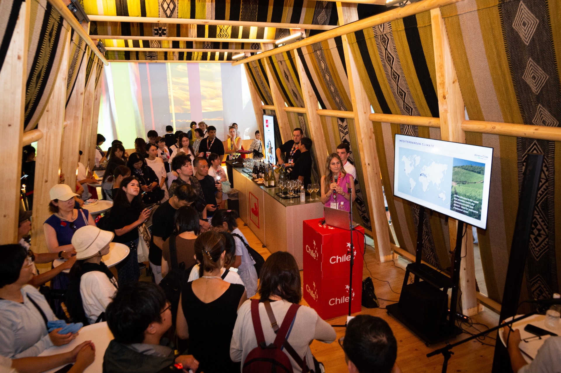 Otro evento relevante fue la barra permanente de vinos, pisco y otros alcoholes, la cual resultó ser muy popular entre el público japonés, siendo visitada por más de 9 mil personas. Se estima que durante los seis meses se consumieron más de 2.000 botellas en esa instancia.