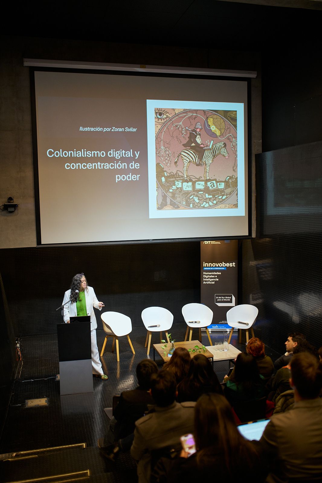 Por su parte, Carolina Sepúlveda destacó el aporte que entregan iniciativas como INNOVOBEST a fomentar el diálogo en torno a estos temas. "No sólo abordamos los desafíos de la IA para Latinoamérica, sino que también los esfuerzos que se están realizando dentro de la región para desarrollar herramientas de IA que contengan nuestra cultura, historia e idiosincrasia. La IA es una herramienta habilitante para innovar, lo que nos permitirá generar tecnologías acordes a nuestras necesidades y contextos territoriales, lo cual impulsará el desarrollo de nuestro país y de la región".