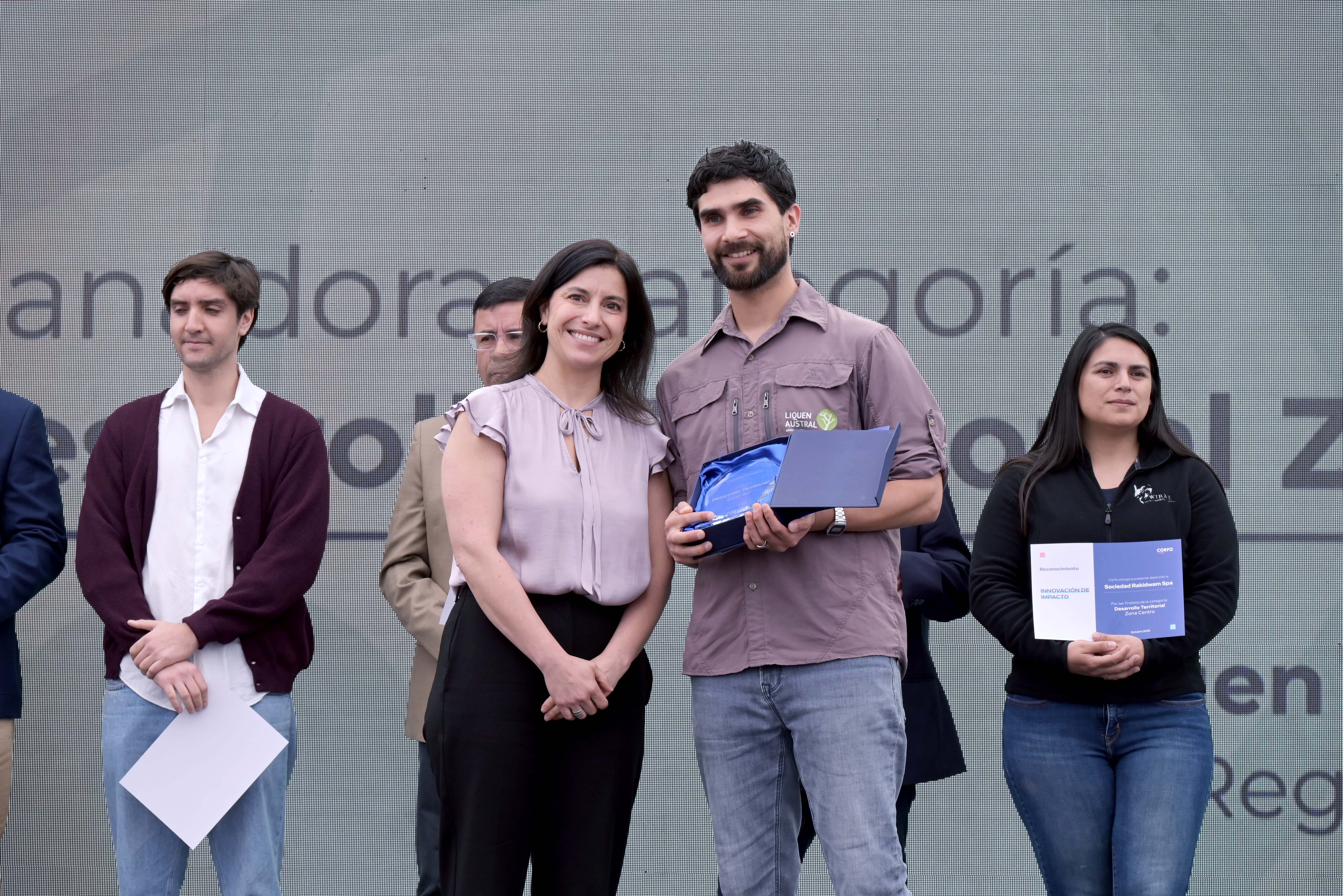 En la zona Sur, el premio recayó en Liquen Austral (Región de los Ríos), dedicada al desarrollo, elaboración y comercialización de bioinsumos naturales, con enfoque agroecológico, para el mercado "Huerta y Jardín"; y en las regiones más australes, el reconocimiento fue para Aysén Recircular (Región de Aysén), empresa abocada al desarrollo de ciudades inteligentes y sostenibles, por ejemplo, a través de la fabricación de paneles de aislación térmica reutilizando el EPS (poliestireno expandido) utilizado por salmoneras.